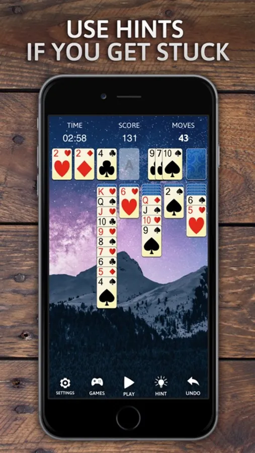 - Your only opponent is the deck and yourself – see if you can beat your best score!