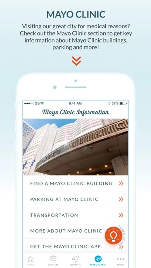 This app was created to help you have smooth, seamless, and positive experiences as you find your way around the city, navigate between appointments, and find things to do and places to go. Three organizations—Experience Rochester MN, Destination Medical Center, and Mayo Clinic—partnered to develop the app.