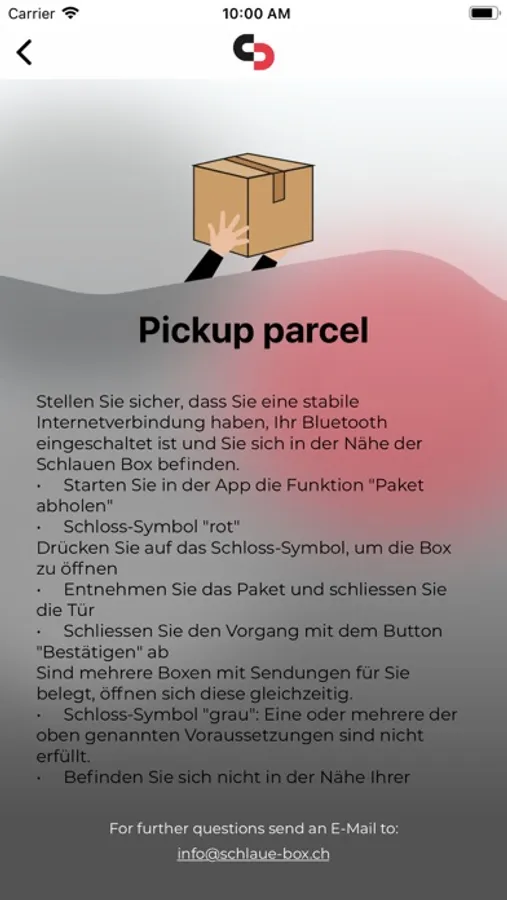 Schlaue Box app is a tool for using external smart lockers. It is designed to simplify sending and receiving parcels using lockers with integrated Bluetooth based modules. User has to be in proximity of the locker itself in order for app to communicate with locker. If unable to pickup its parcel, user has an option to share access to a trusted person.