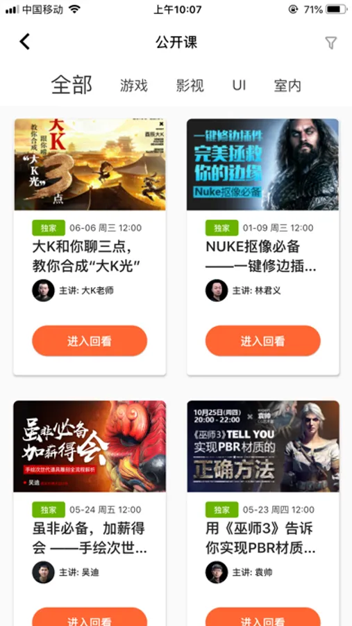 在【另你教室】,上百节CG行业的【大咖公开课】免费学习,与知名企业设计总监、CG艺术家分享经典项目案例,创作理行业念与技巧,实现与大师“线上零距离”接触。