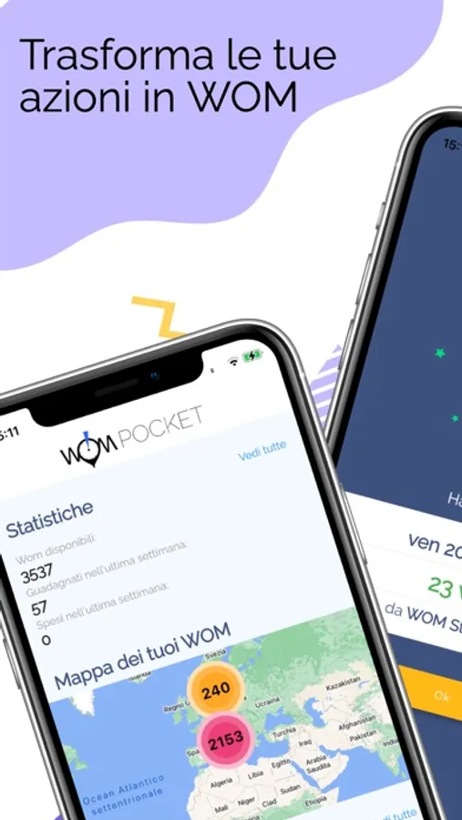 The WOM Pocket application allows you to collect the vouchers you have earned and gives you the opportunity to spend them at third-party merchants (businesses, shops, etc.) that support the WOM initiative.