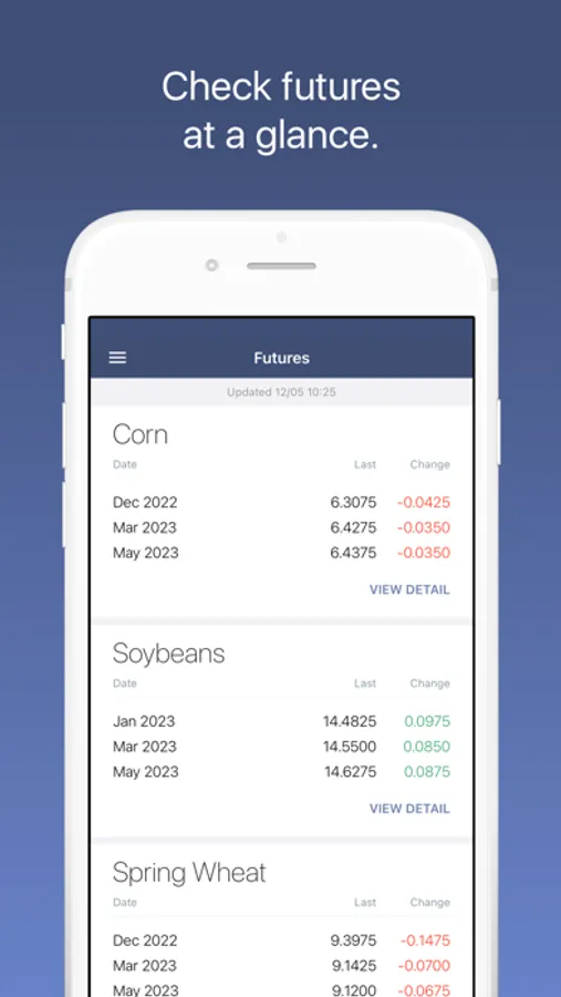 Futures: See Grains, Feed, Livestock, and Ethanol futures listed in order of your preference