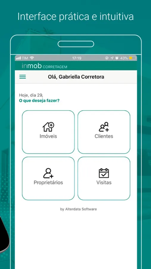 O aplicativo Inmob Corretagem traz para os corretores, de forma intuitiva alguns dos principais recursos do Corretagem Web, um dos produtos Immobile, da Alterdata.