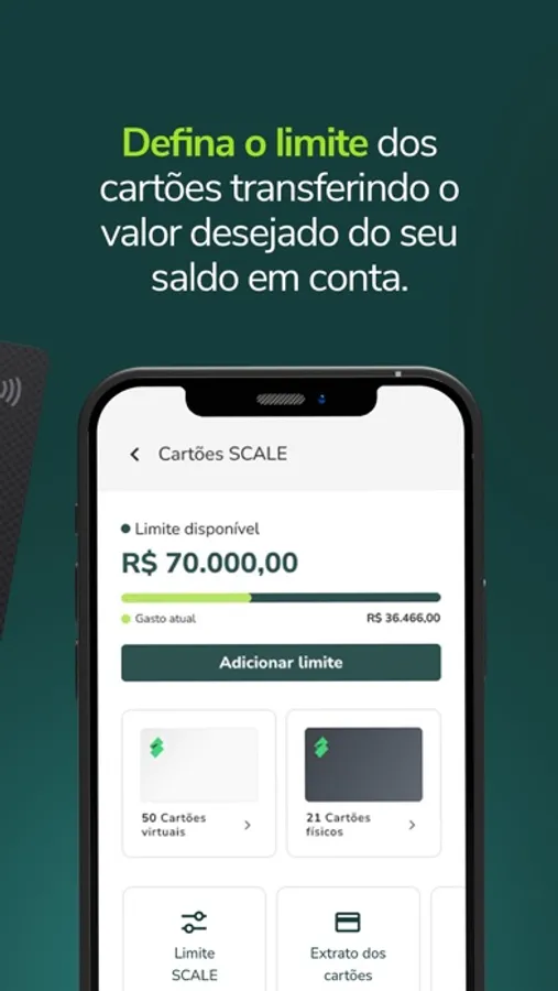 • Transfira do saldo da conta para o limite global de cartões o valor que deseja usar em transações.