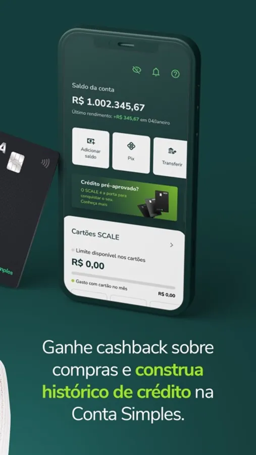 • Ganhe cashback sobre compras acima de R$ 25 mil e construa histórico de crédito na Conta Simples.