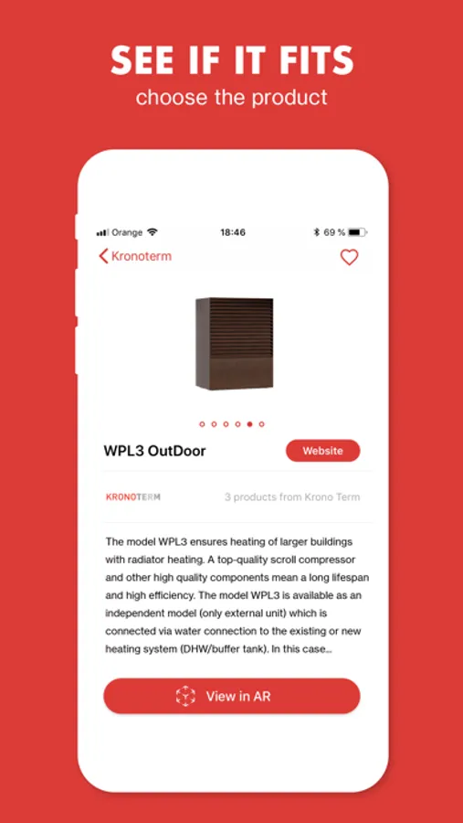 With Kronoterm AR application you can preview the entire product line of heat pumps in Augmented Reality with just a few swipes of your device.