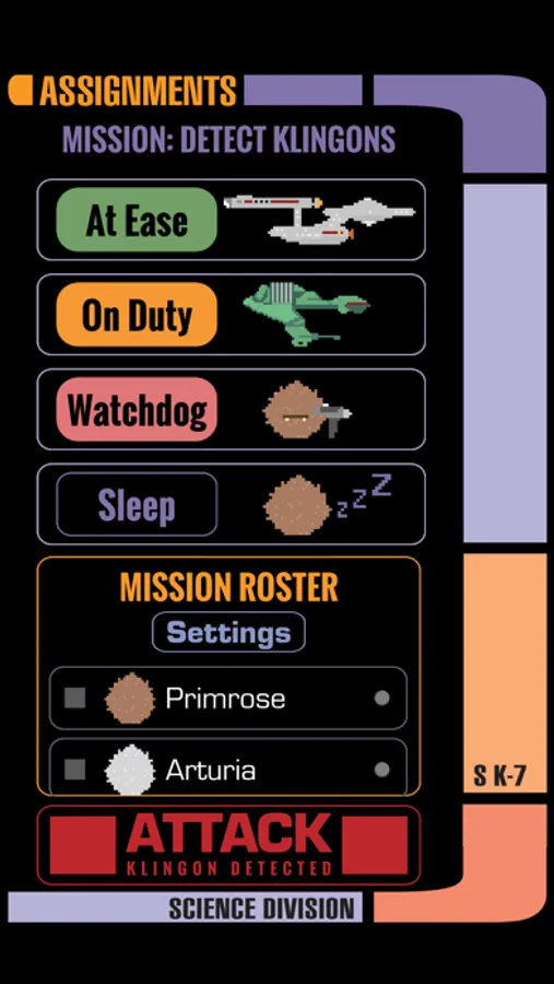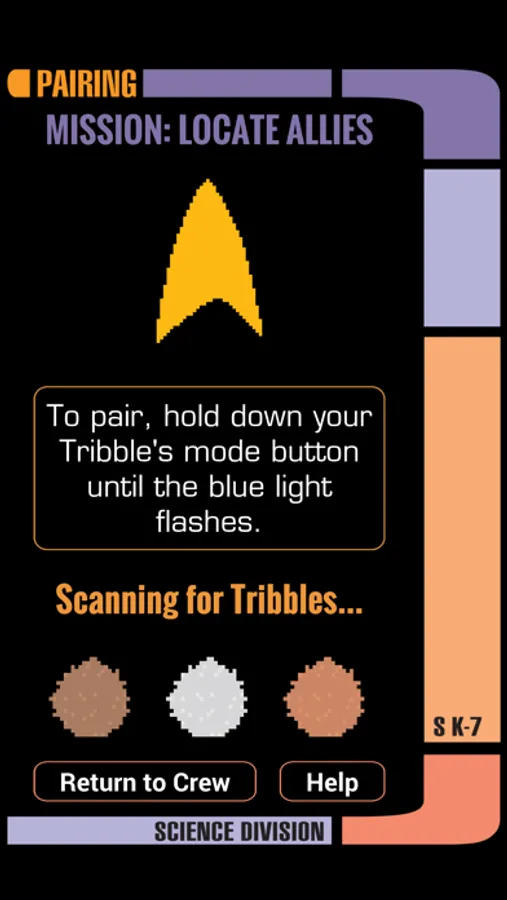 Pair with and name your Tribble, choose your ship, and assign your Tribble to different modes to carry out your mission: