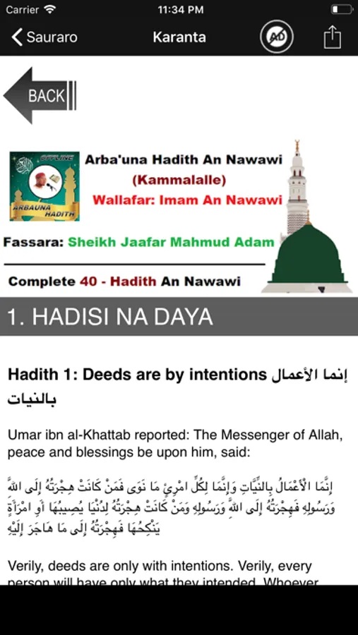 A ciki zaku samu cikakken karatun littafin tun daga hadisi na daya har zuwa na arbain da tara.