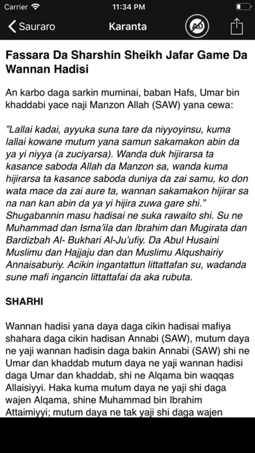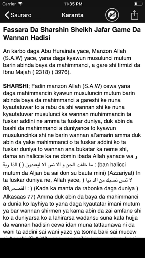 - Read Arbauna hadisi IN Arabic, English and Hausa languages.