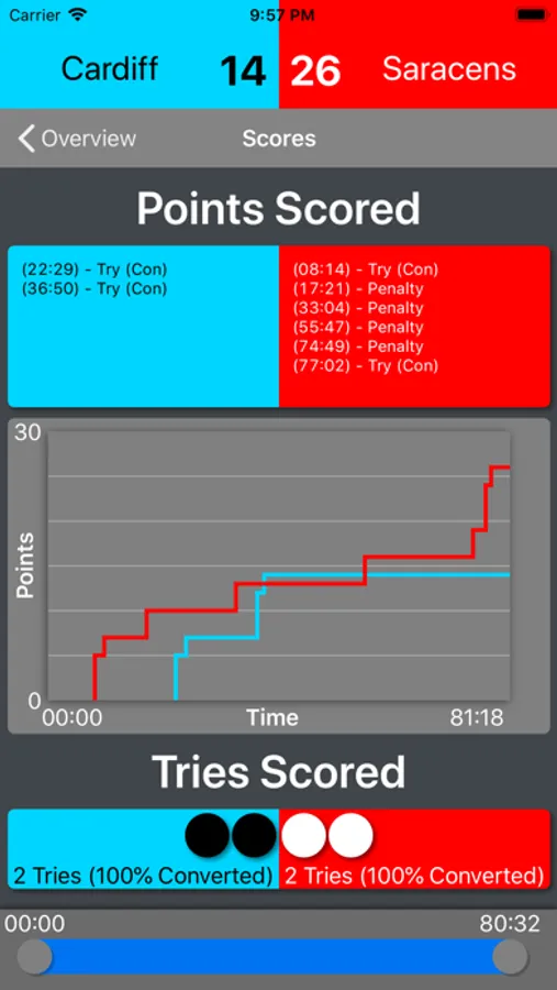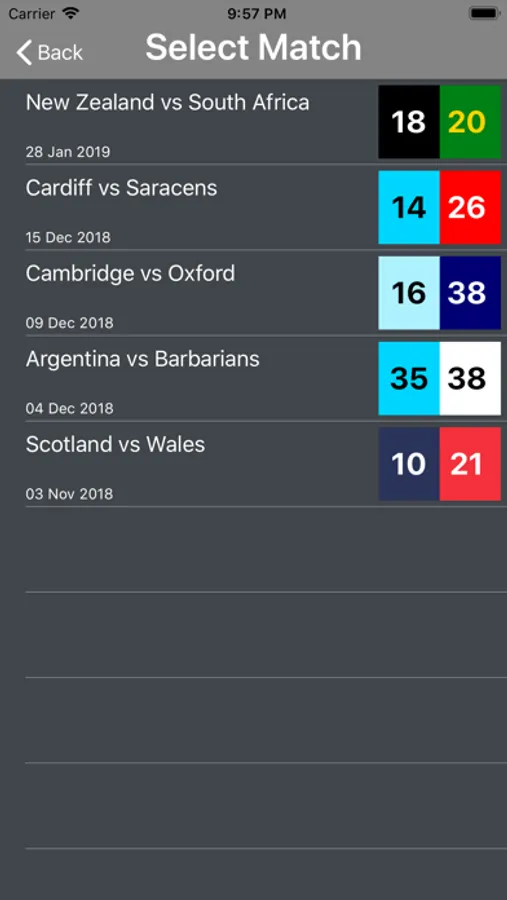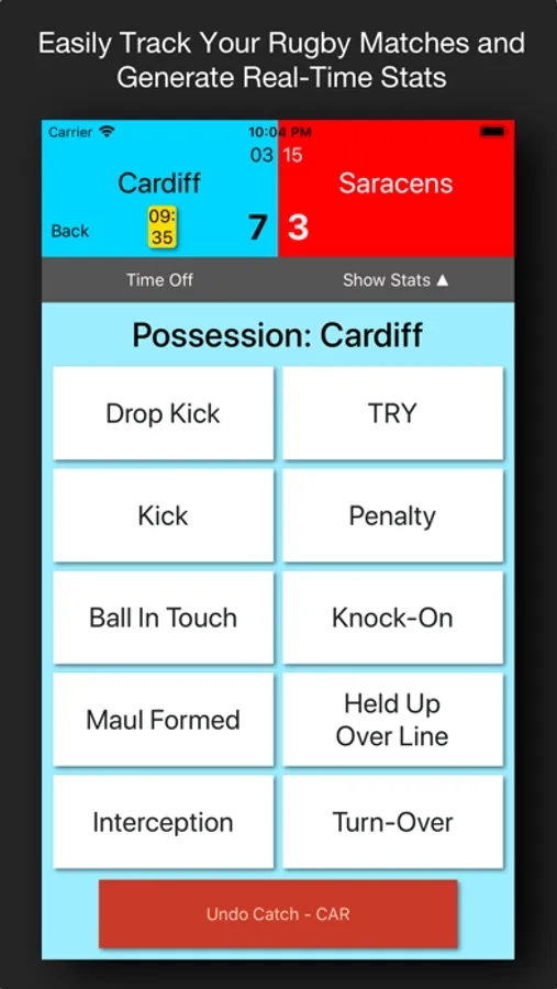 - A simple and optimised user interface make it easy for anyone who know the rules of rugby to track a match.