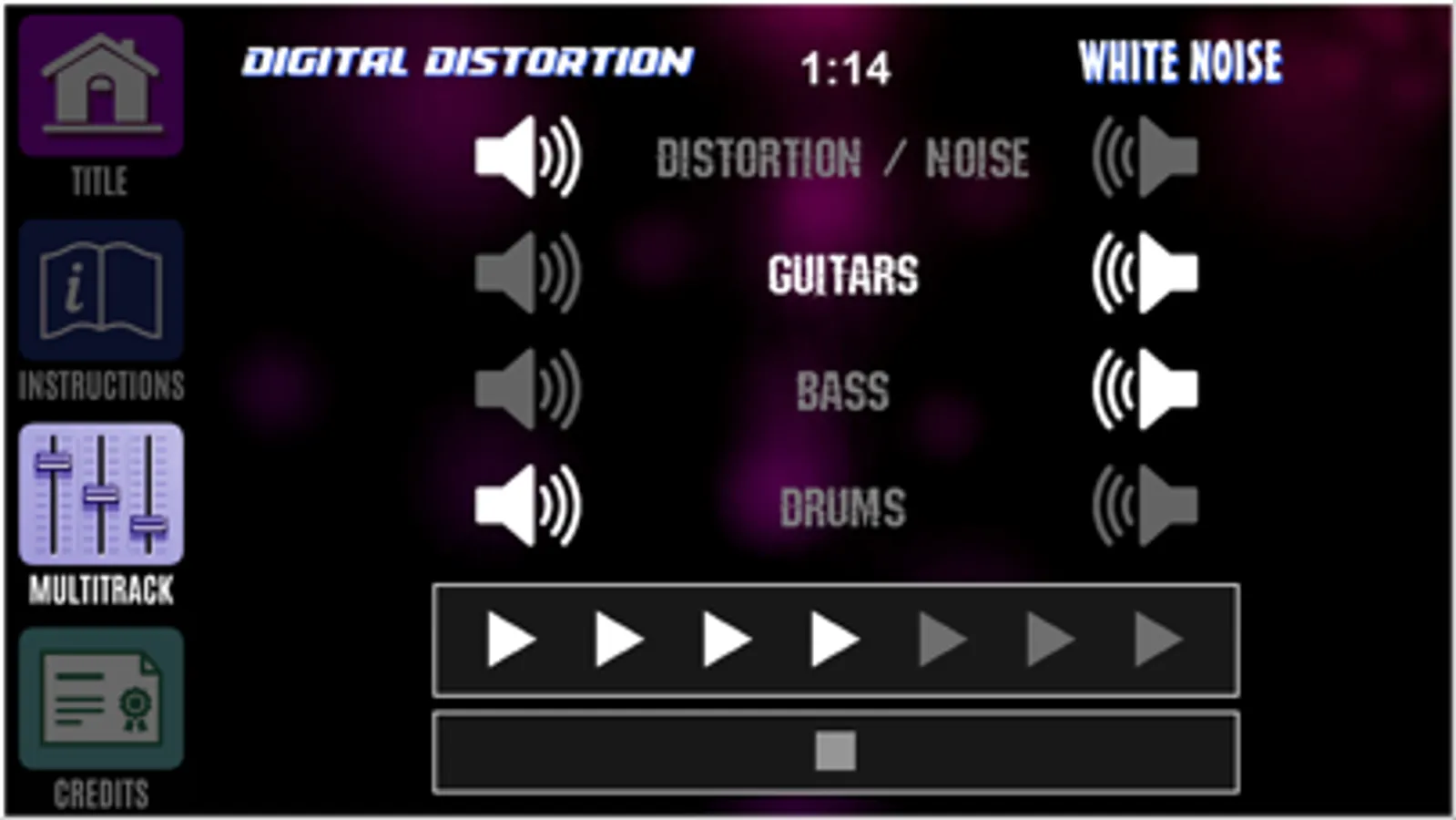 - Each track contains two "speaker" buttons which let you select which instrument you want to hear. You can hear each recorded part by itself or not at all.