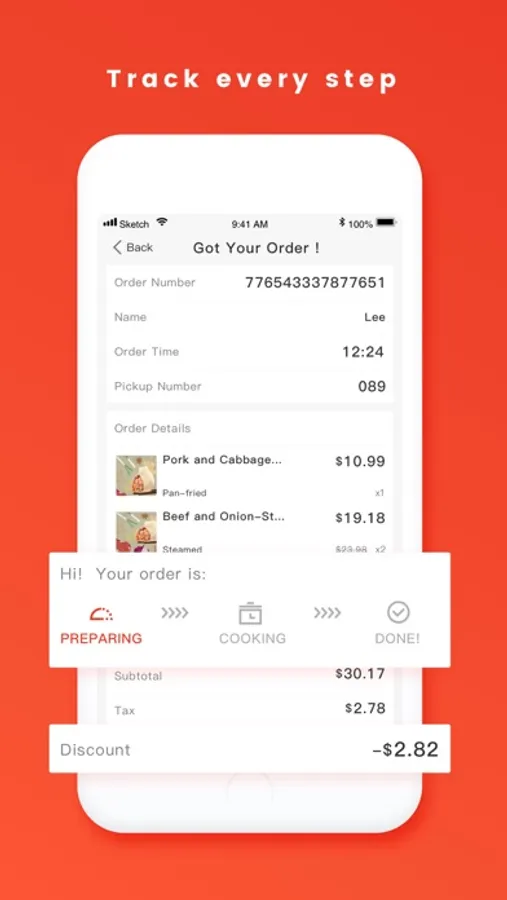 Once you place an order, you can follow every step of your order from the app. JIAO uses advanced methods to streamline the whole cooking flow and provide real-time updates on customers’ orders.