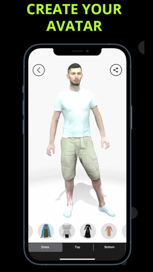 In the app you can virtually try on clothes, animate avatars, experience AR, see cartoons with your avatar, export your avatar to VRChat or GTA V and export your avatar in different formats (fbx, usdz, glb, MetaHuman, Character Creator.). You can also share your avatar with your friends so they can interact with your avatar on their own device!