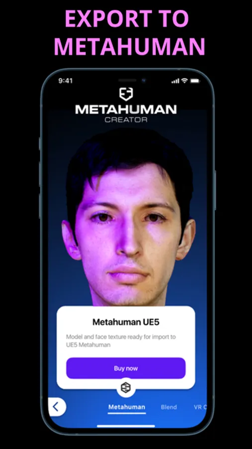 • Turn your avatar into MetaHuman with a simple export directly from the app