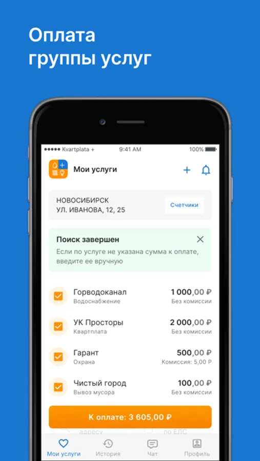 Оплата услуг ЖКХ, домофона, связи и других услуг, а также передача показаний счетчиков, не выходя из дома!
