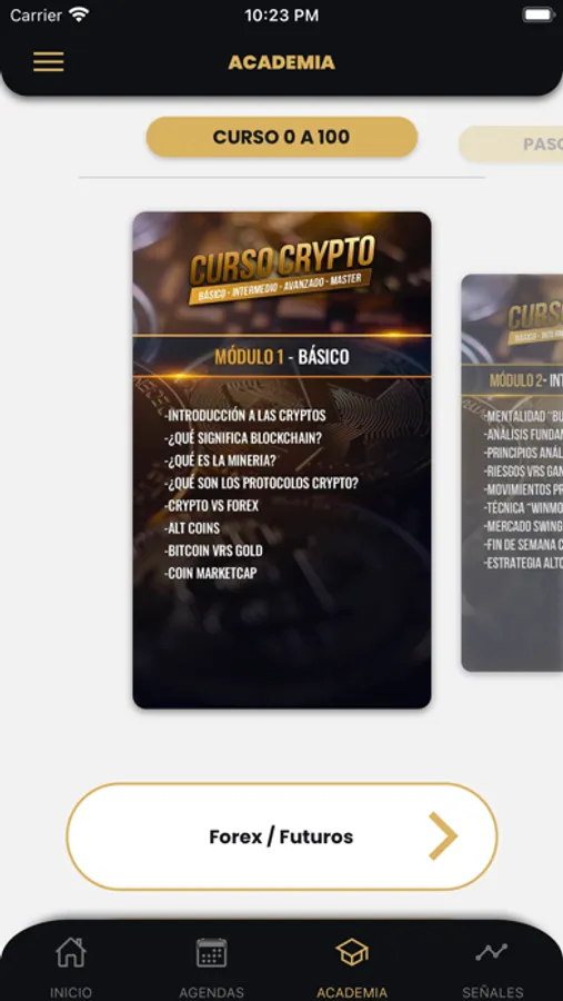 Nuestra app ofrece capacitación guiada por expertos en marcados financieros , trading y emprendedurismo.