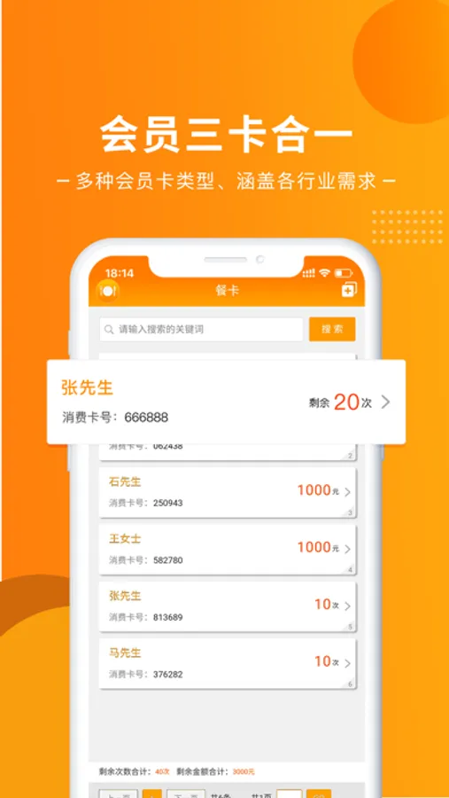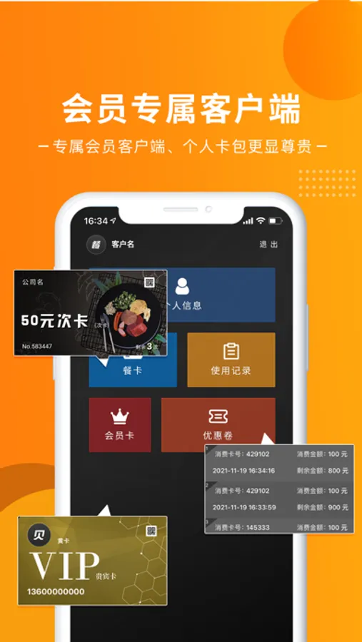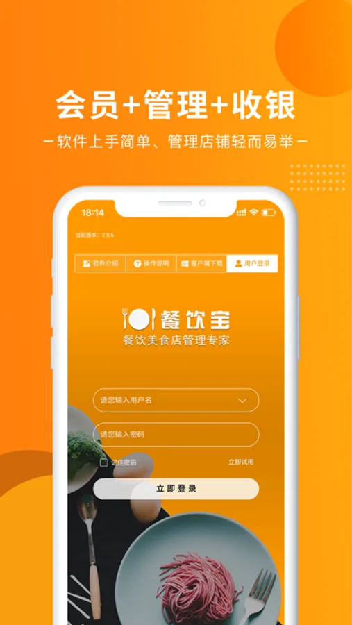 1、餐饮宝是一款应用于美食店管理餐卡的APP;