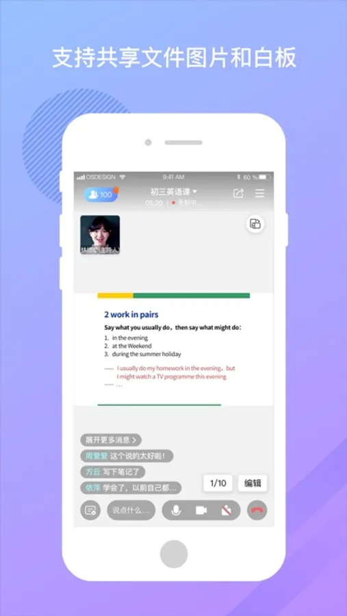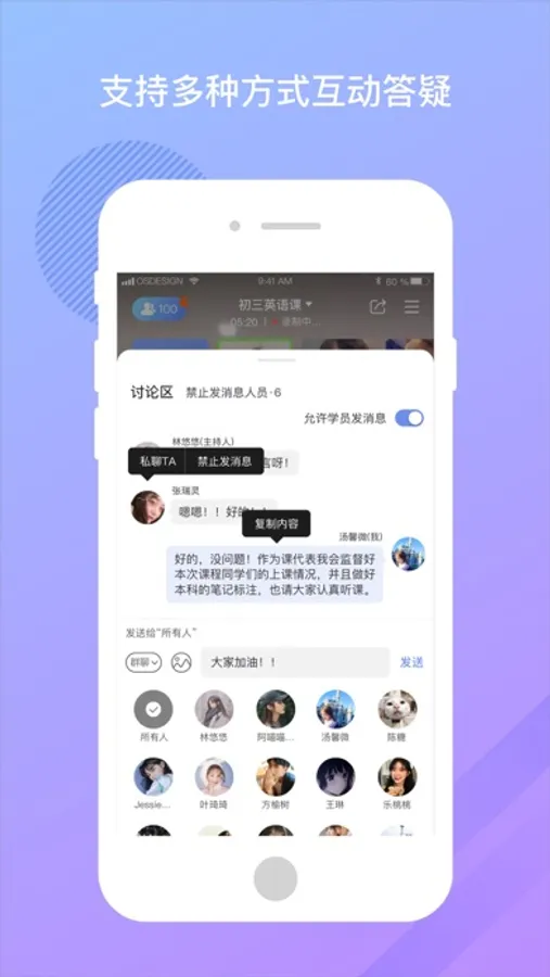 【互动式教学】拥有视频、文字、图片等多种沟通方式,方便老师与学生之间的互动沟通,营造活跃的课堂氛围。