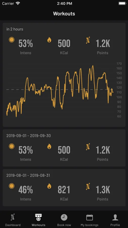 Our workouts are tech-driven. During the workout, you wear trackers that send real-time