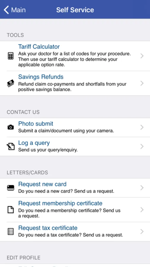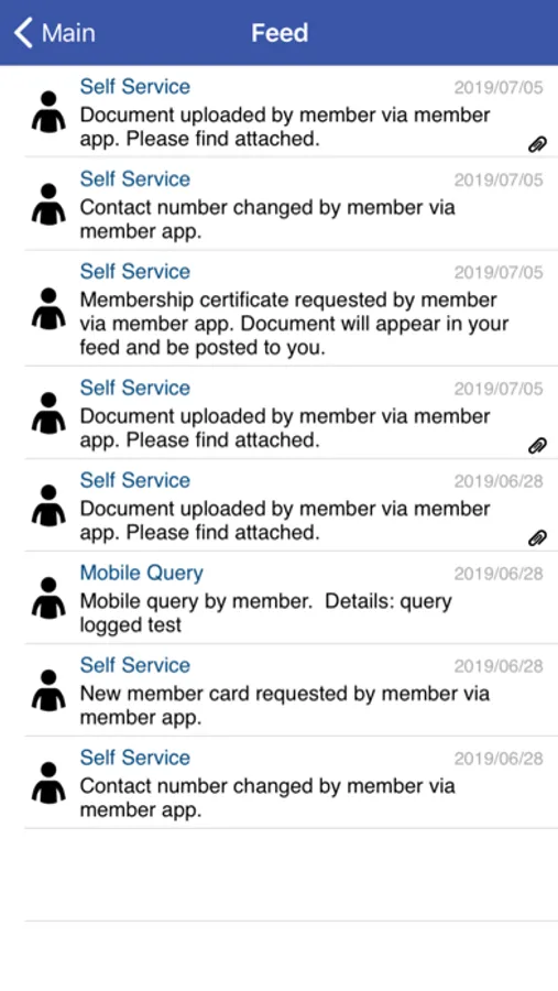 Information Feed: A list of all recent interactions between yourself or your membership and Metropolitan Botsogo Health Plan. Including records of interactions with contact centre agents, recent statements.