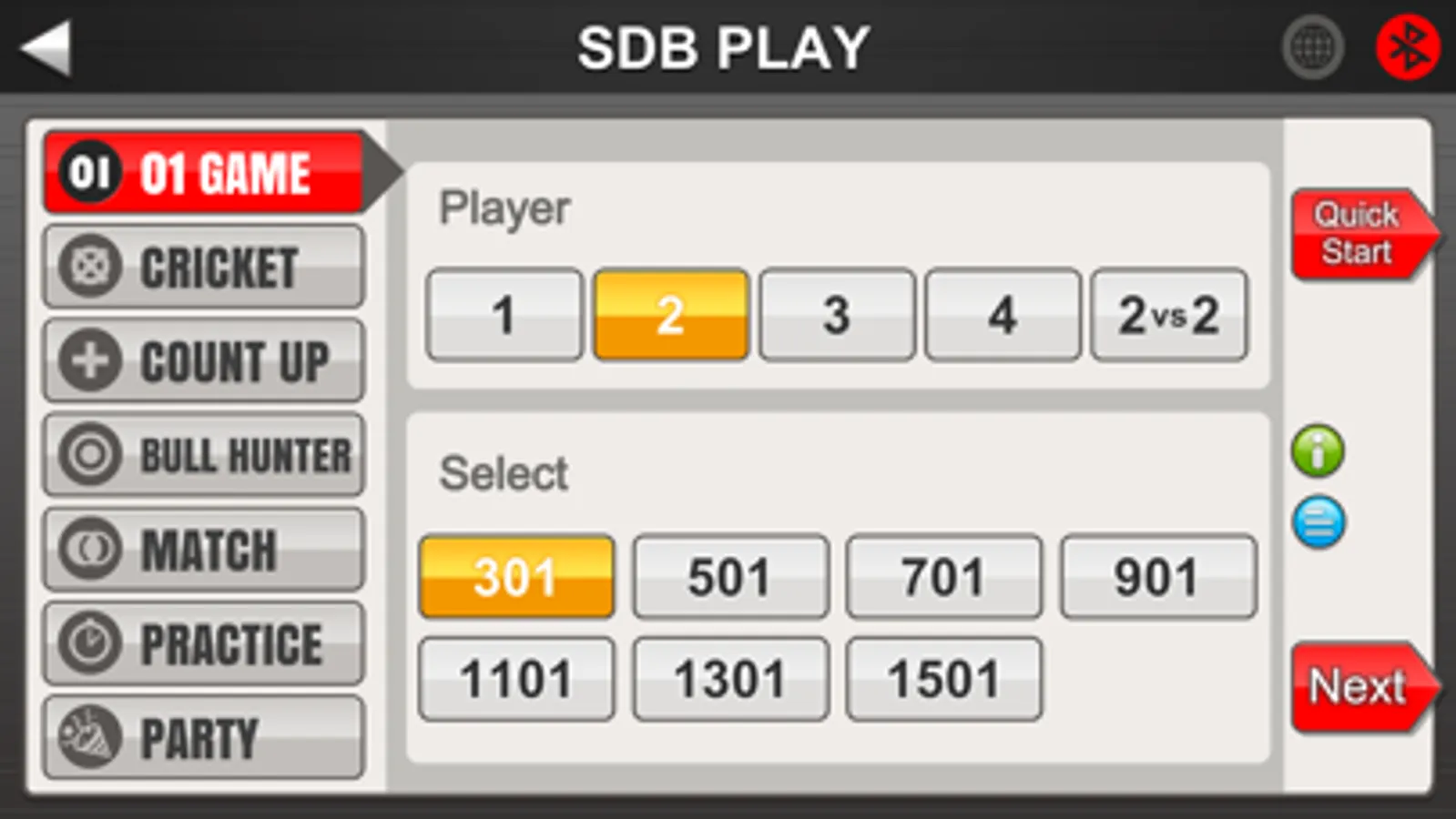 For example: 01 games, cricket, count up, bull hunters