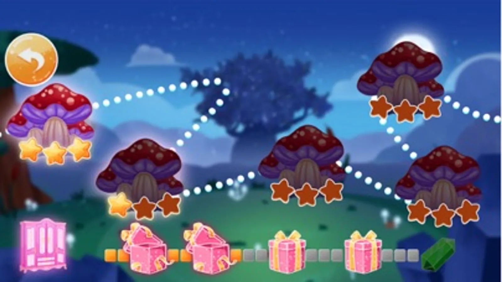 Beautiful scene - not only the classic forest, undersea world, but also candy town, and Halloween castle, lovely cartoon characters, and more than ten scenes to experience.