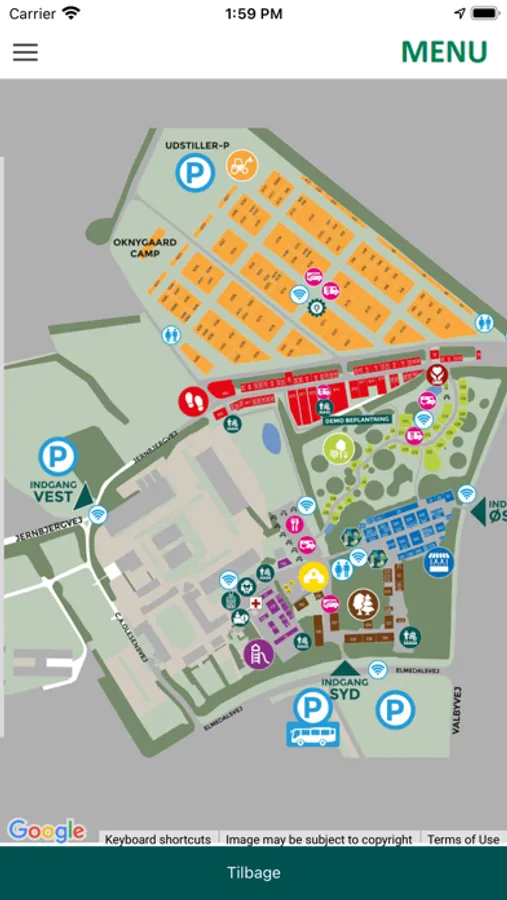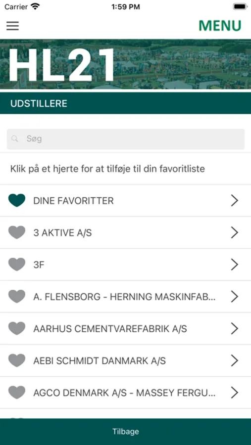 * Klik på stand nummer og se udstillers placering på oversigtskortet – og se din egen position på kortet også.