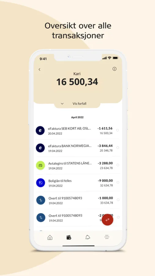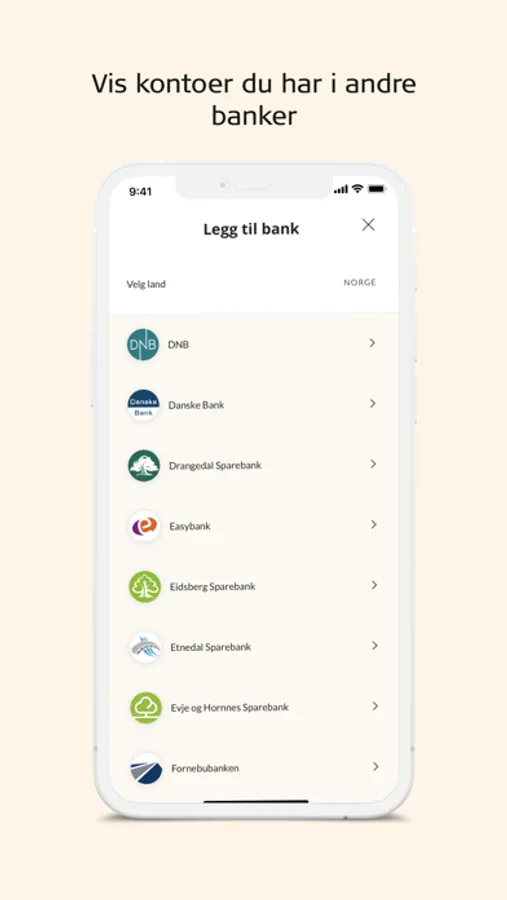 • Se alle kontoene du disponerer i en og samme oversikt, også kontoer fra andre banker