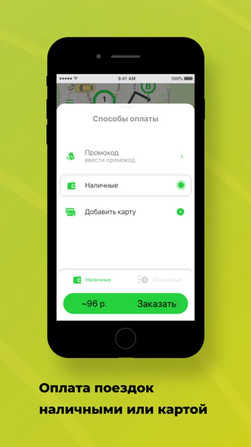 Оплачивайте поездки наличными или привязывайте карту и рассчитывайтесь безналично.