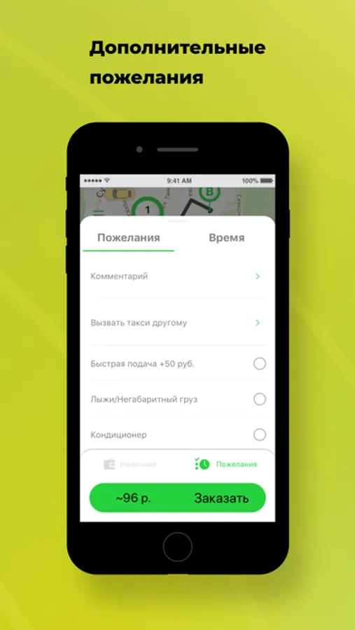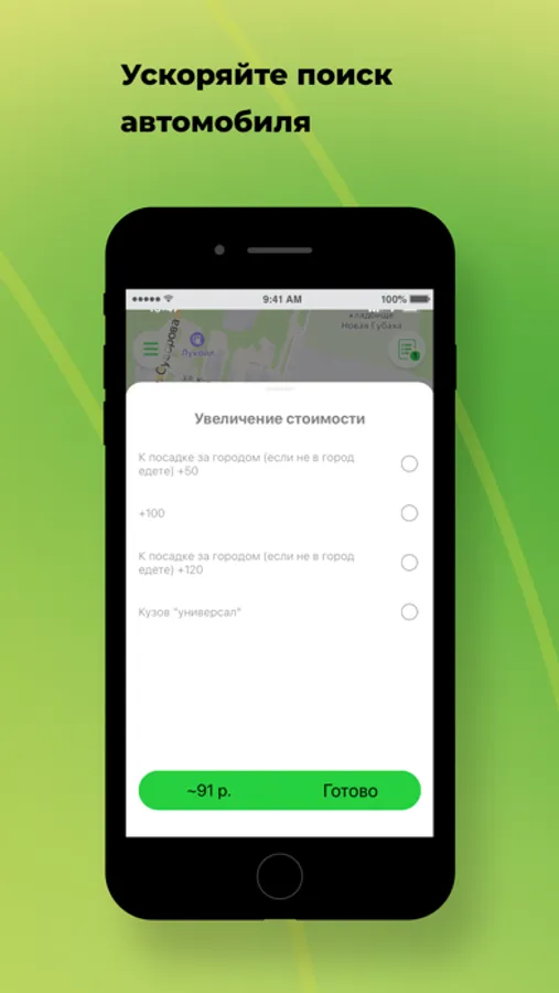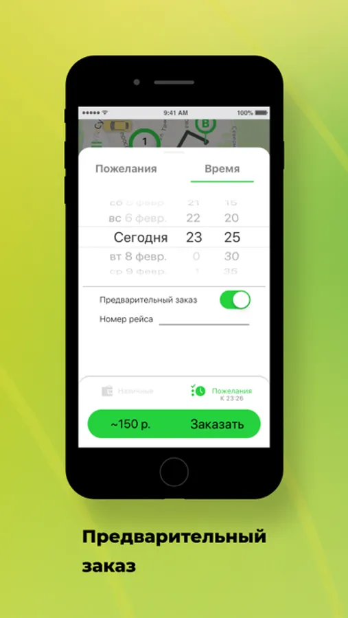 Выберите опцию “Предварительный заказ”. Поиск автомобиля начнется незадолго до заказа поездки, и автомобиль приедет к назначенному времени. Также вы будете заранее знать стоимость поездки..