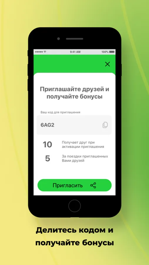 Приглашайте друзей в приложение и зарабатывайте бонусы с помощью реферальной системы. Оплачивайте ими и экономьте на поездках.