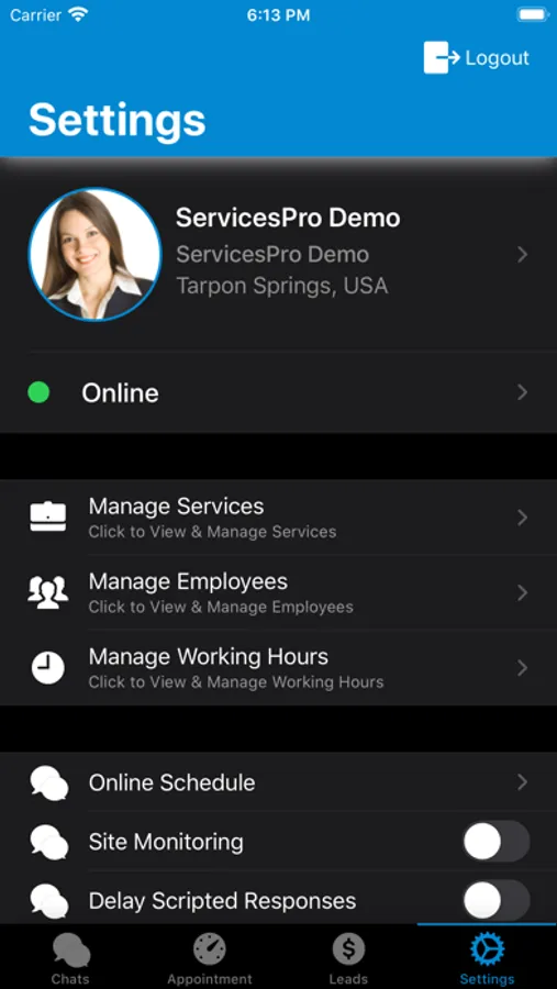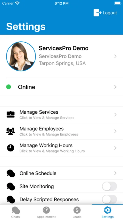 ServicesPro Mobile Application is available to all ServicesPro customers for managing their chats, leads and appointments.