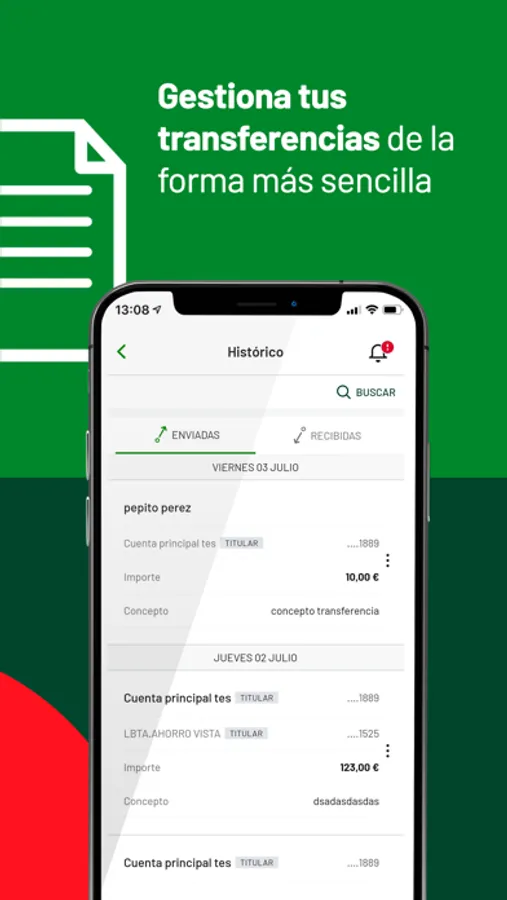 Consulta el saldo de tus cuentas, visualiza los movimientos y compártelos con quien quieras de forma fácil.
