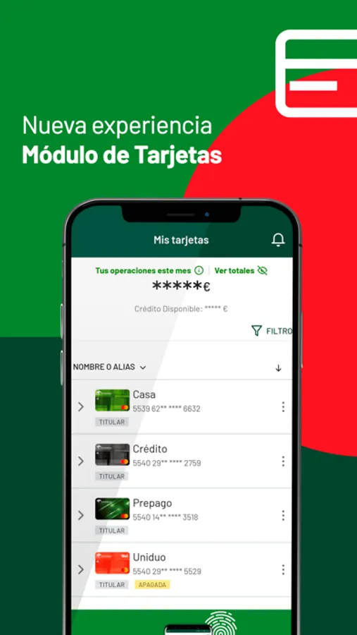 Gestión integrada de tus tarjetas. Podrás consultar, operar, configurar tu tarjeta, solicitar tarjetas virtuales para tus compras por internet. Incluso si tu cuenta necesita dinero, puedes traspasar del crédito de tu tarjeta a tu cuenta de forma inmediata con Dinero al momento.