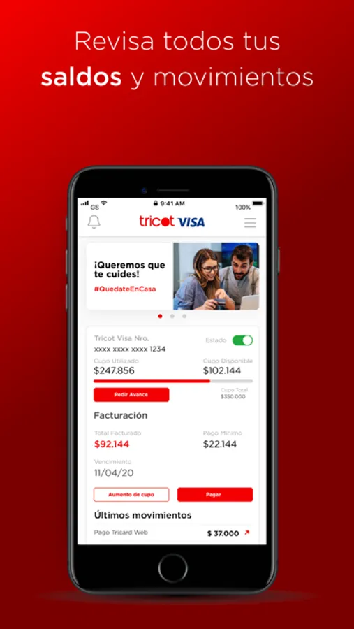Con la aplicación móvil Mi Tricot Visa podrás: