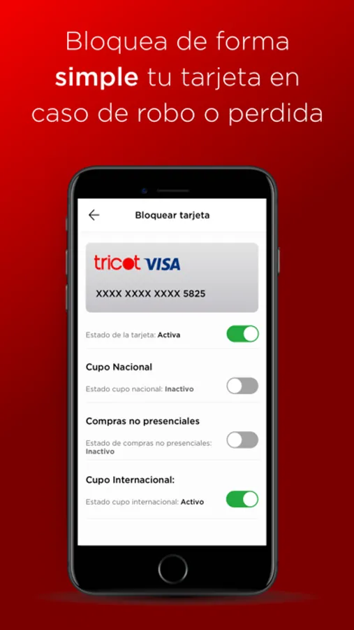 - Activar o desactivar tu tarjeta Visa Tricard cuando quieras.