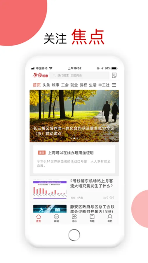 集时事新闻、评论、工会信息、职工服务等功能于一体的全媒体发布平台。