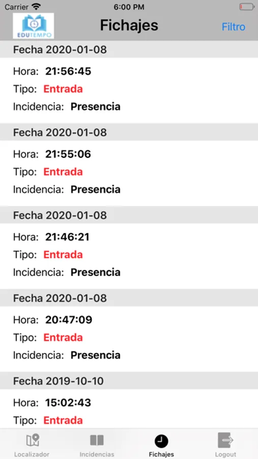 Fichaje Virtual Screenshots