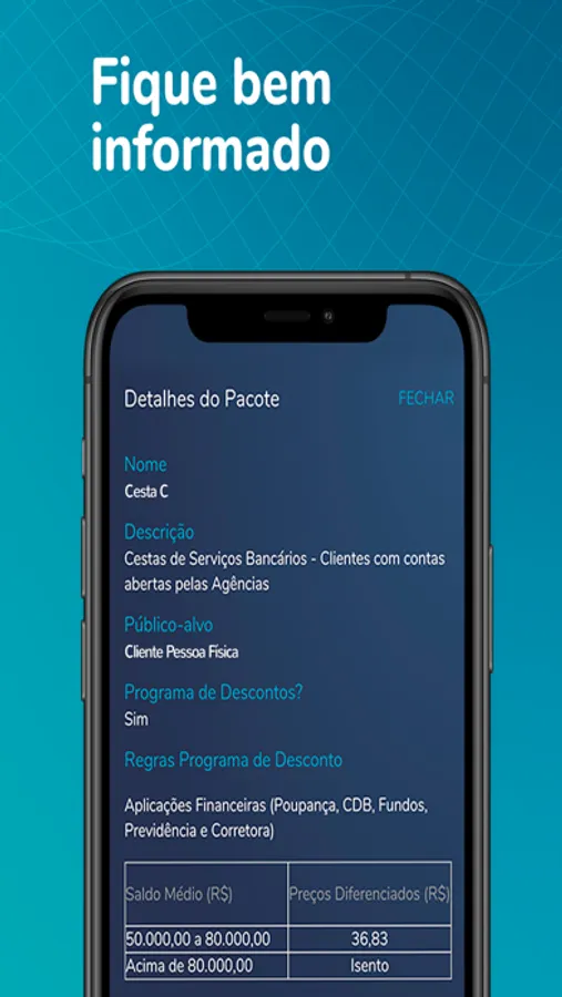 Com o aplicativo Feesbank você pode consultar e comparar preços das tarifas e composição dos pacotes de serviços disponibilizados para clientes pessoa física ou jurídica dos principais bancos.