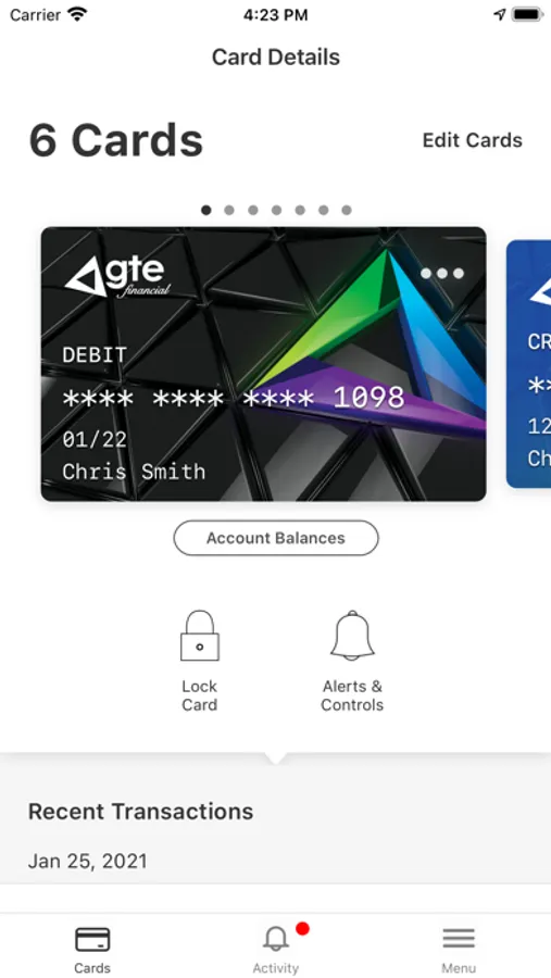 With GTE Cards from GTE Financial, your financial security is in the palm of your hands. With GTE Cards your phone becomes another line of defense in the fight against fraud. Control when, where, and how your debit and credit cards are used, and setup real time alerts to keep you informed anytime a transaction occurs on your account.
