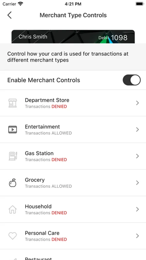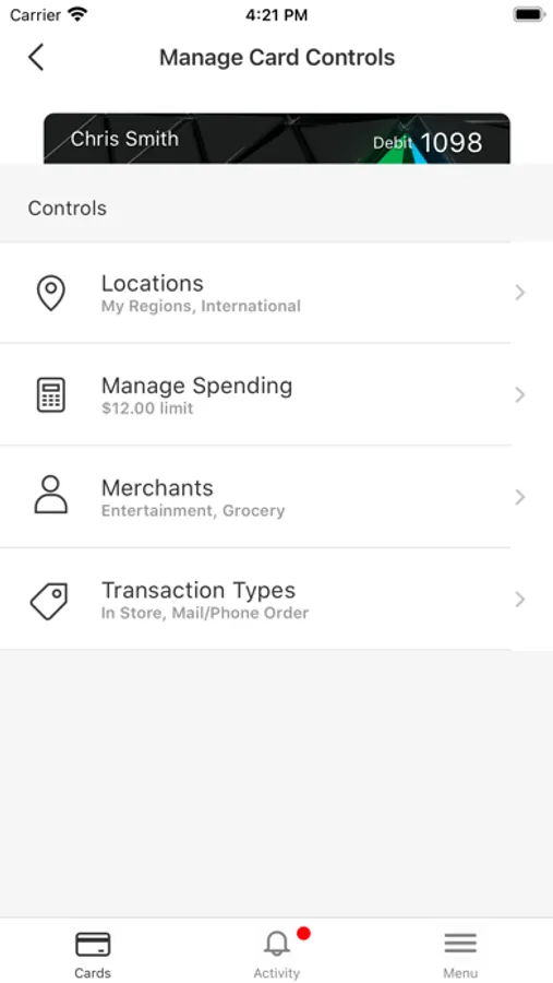 - Use Geolocation services so transactions are not authorized on your card if your phone is not within your defined range.