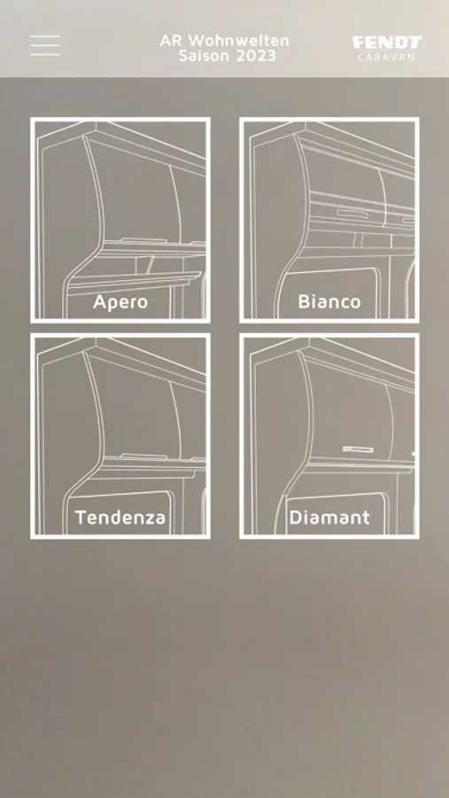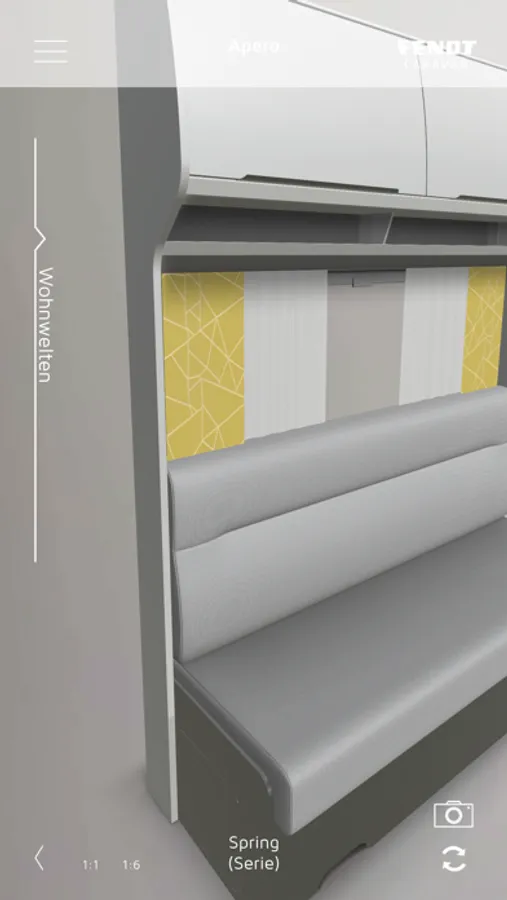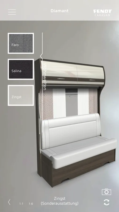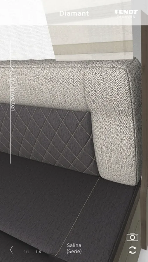 Fendt Caravan bietet Ihnen mit der neuesten Augmented-Reality App die Möglichkeit von Zuhause oder Unterwegs Ihre persönliche Wohnwelt auszuwählen. So echt, als stünde diese bereits vor Ihnen. Wählen Sie Polster und Deko-Stoffe nach Ihrem Geschmack als fotoreale 3D-Darstellung in 1:6 oder auch in Originalgröße und halten Sie Ihre Favoriten per Screenshot fest. Dank der aktuellsten AR-Technologien können Sie die Wohnwelt-Projektion sowohl auf einem Grafikcode als auch ohne Grafik direkt auf dem Boden oder dem Tisch darstellen.