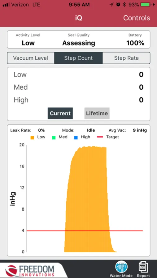 The Freedom iQ Vacuum System is a microprocessor controlled, automatically adjusting vacuum system that monitors activity to control the amount of pressure in the prosthetic socket for the changing needs of the user. The iQ Vac mobile application has portals for both patients and prosthetists to view and modify settings in the iQ Vacuum System and to generate outcomes reports.