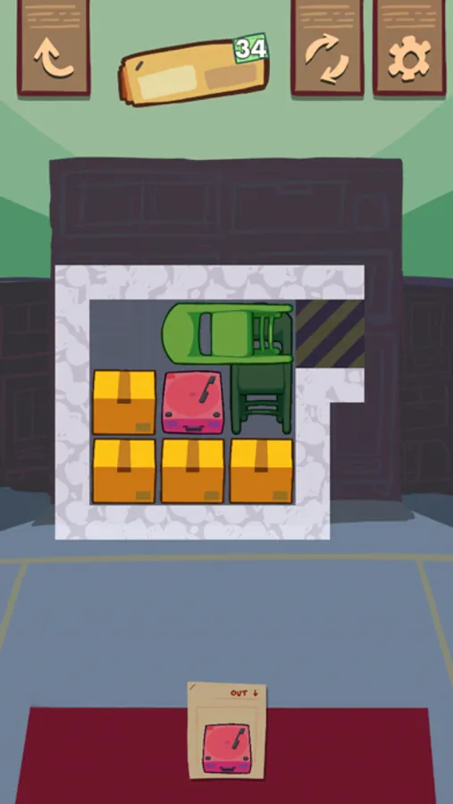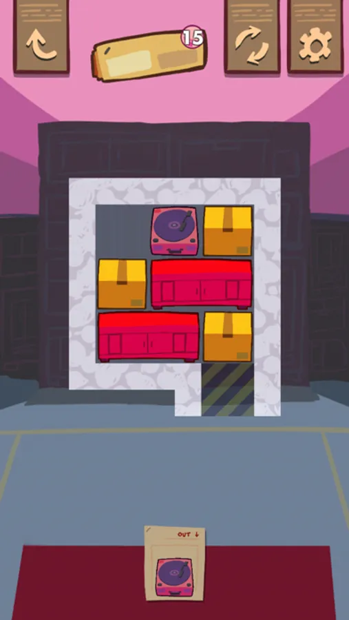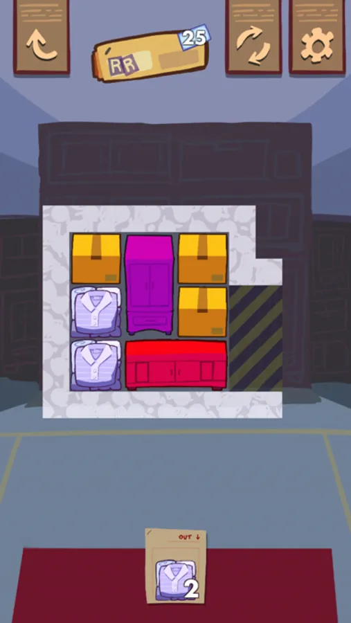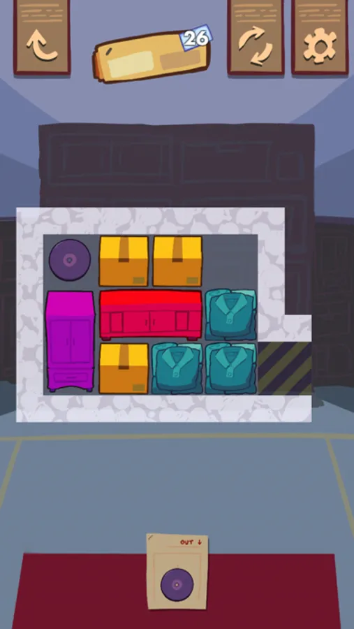 A Day Off is a game about organizing a messy warehouse by sliding furniture and boxes in and out of their storage units.