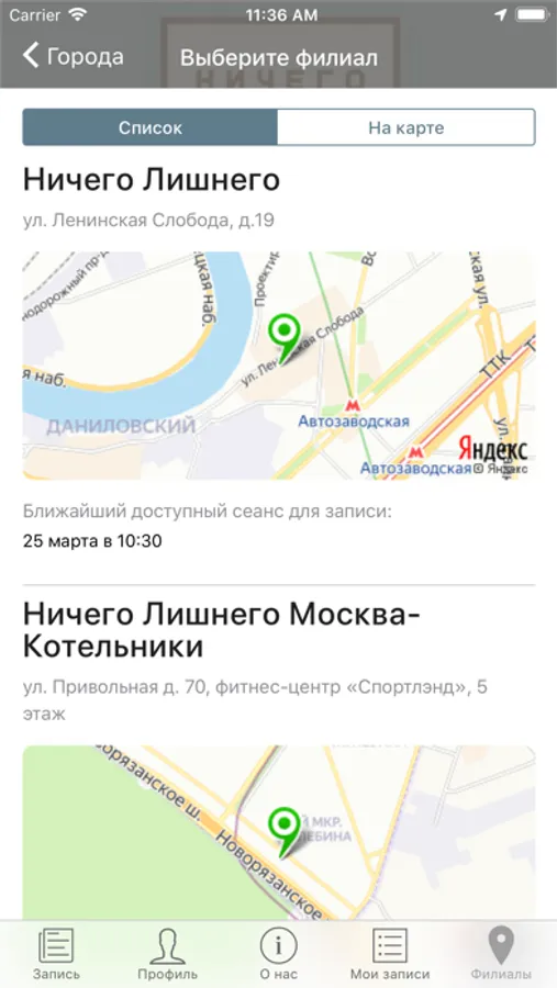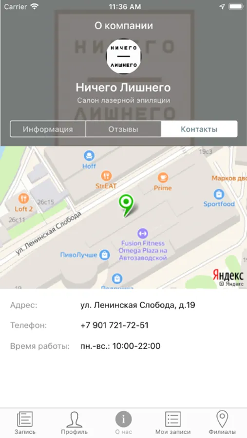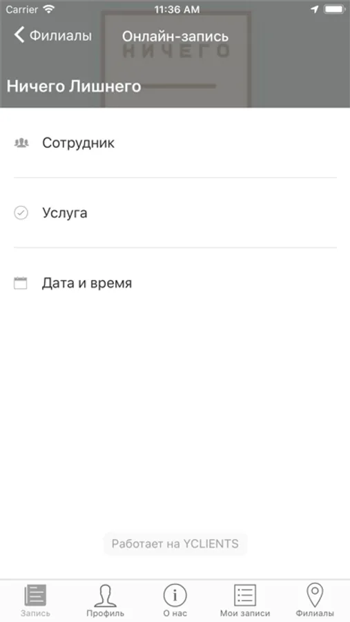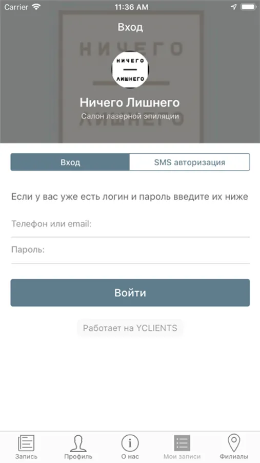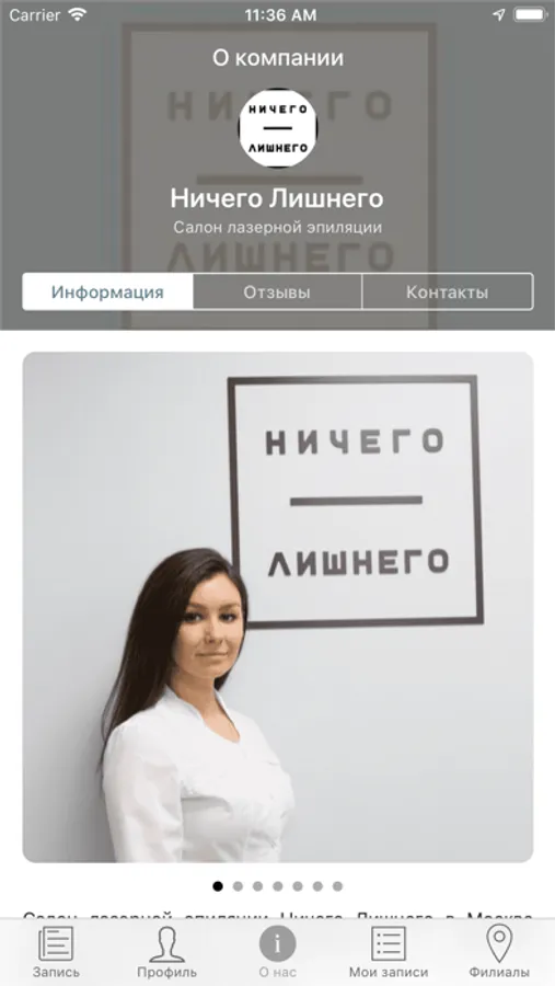 Приложение для удобной записи на сеанс эпиляции в салоны Ничего Лишнего.