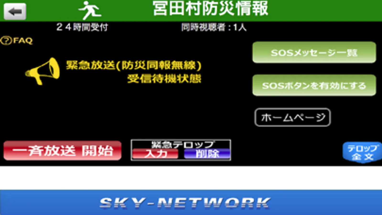 パスワードを入力し、スタッフモードでアプリを起動すると、このアプリをビジターモードで起動している他のモバイルに向けて放送をする機能を使用することができます。