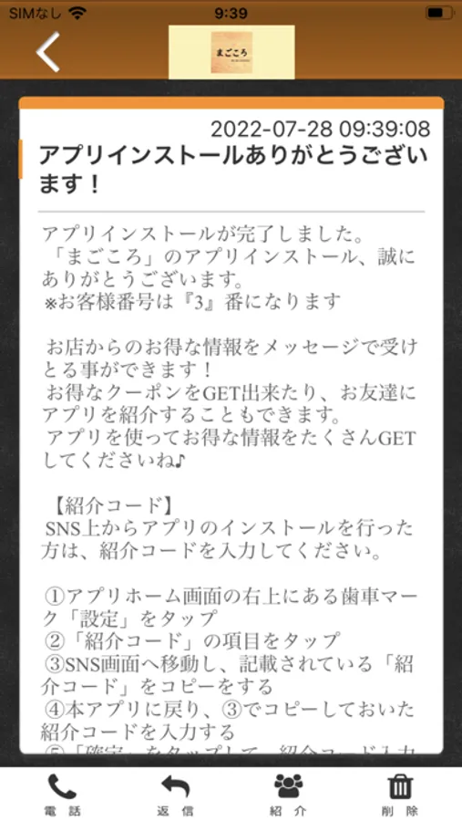 まごころのアプリをSNSを通じてお友達に紹介する事ができます。