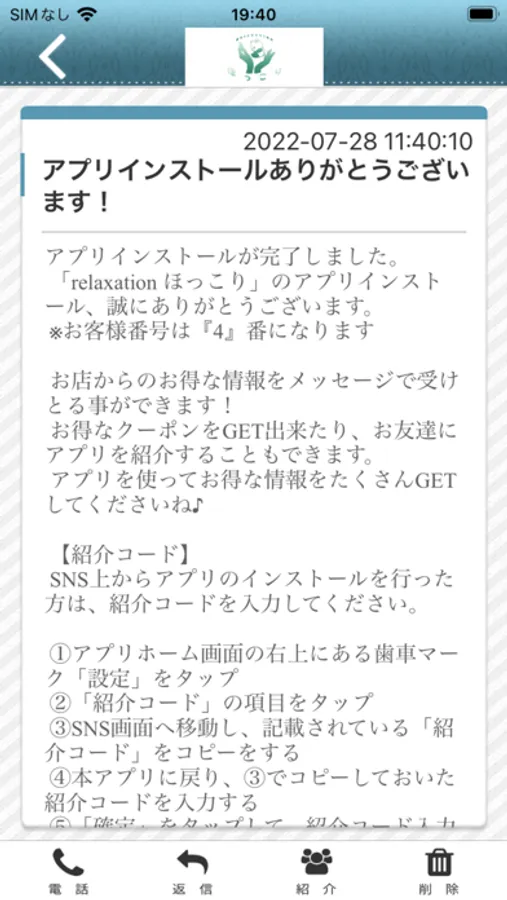 ほっこりのアプリをSNSを通じてお友達に紹介する事ができます。
