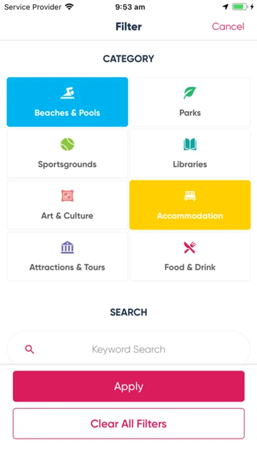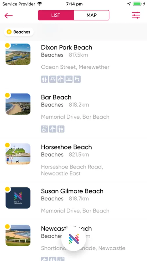 • Places – Searchable locations of places, points of interest, public art; destinations such as Parks, Sportsgrounds, Beaches, Baths, Libraries, Museum, Art Gallery, Civic Theatre, Fort Scratchley; as well as comprehensive lists of restaurants, bars, accommodation and tourist attractions.