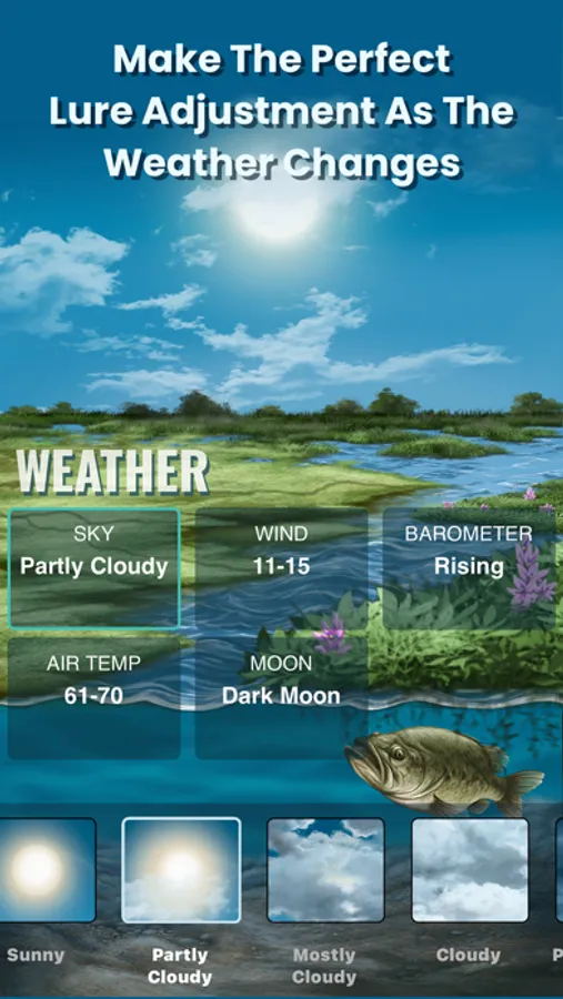 BassForce® even lets you save your favorite bodies of water and associated conditions. Just select the location you want, import the current weather conditions, and get your bass lure picks from the pros.
